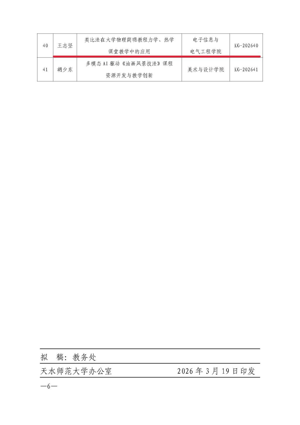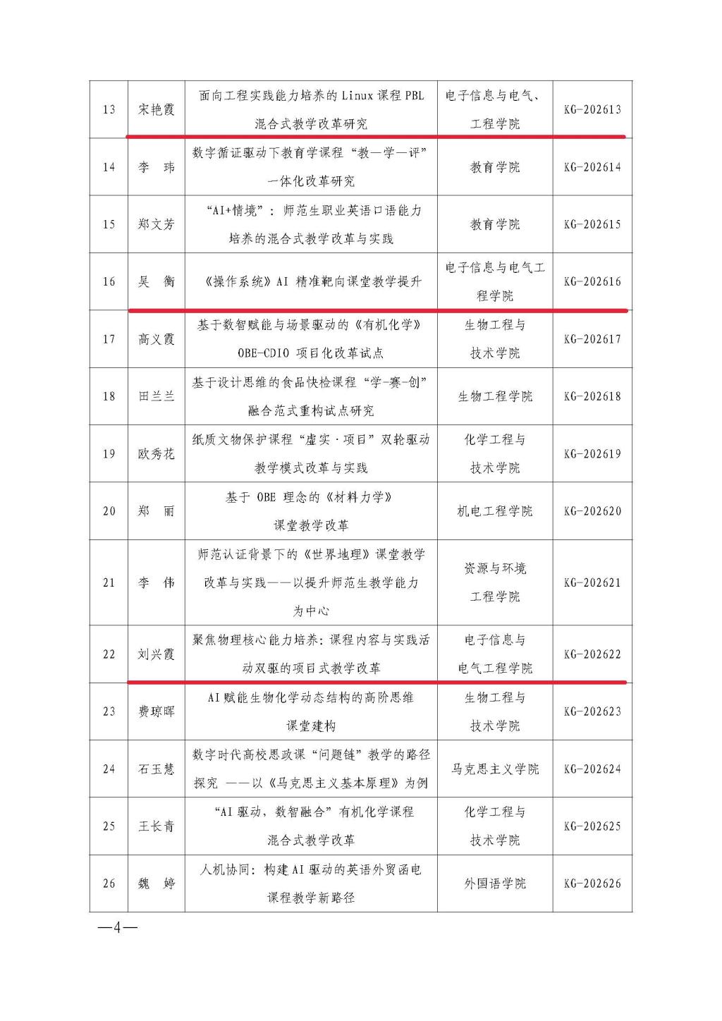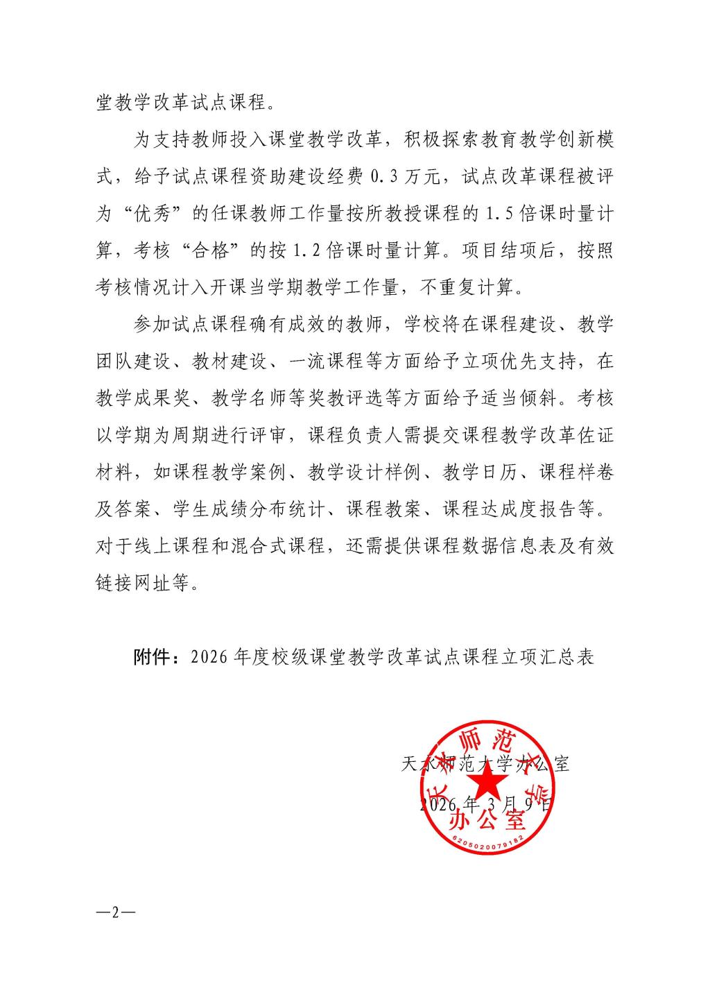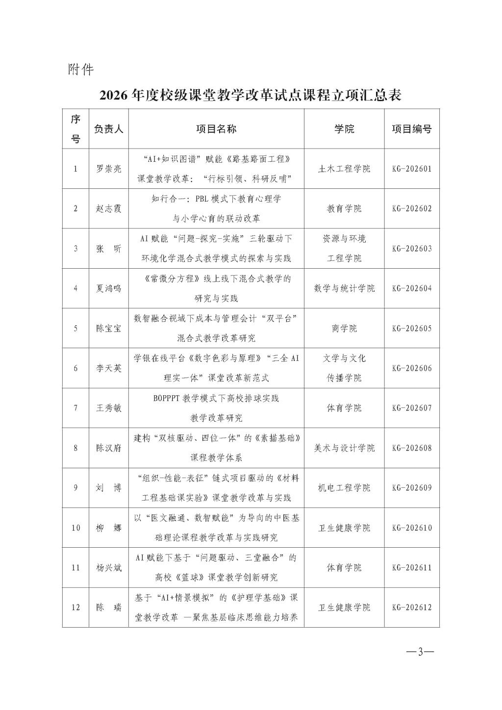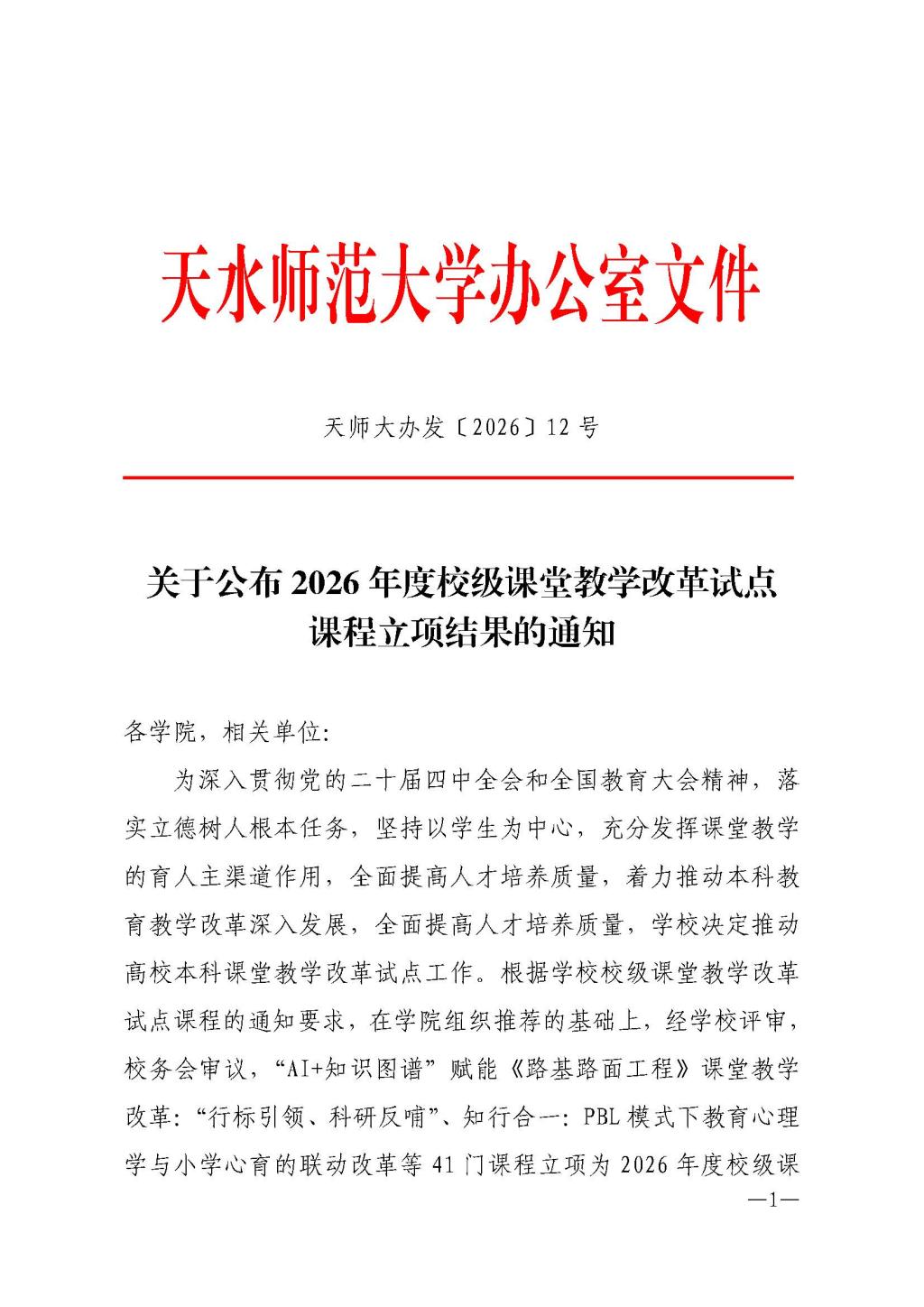 关于公布2026年度校级课堂教学改革试点课程立项结果的通知