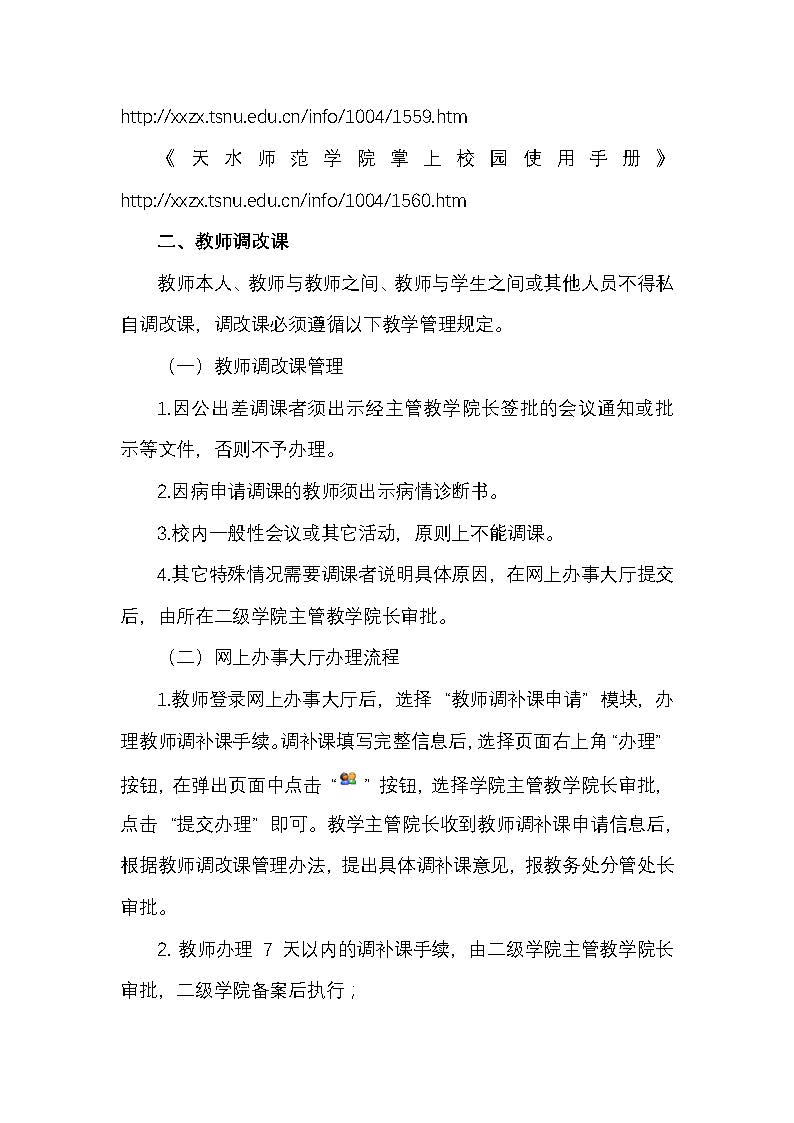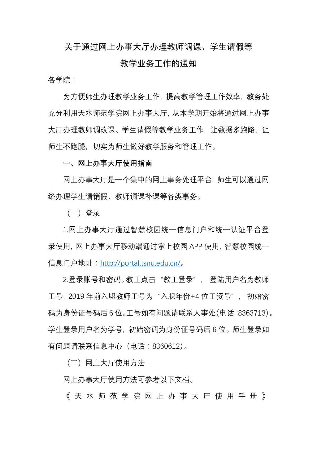 关于通过网上办事大厅办理教师调课、学生请假等教学业务工作的通知