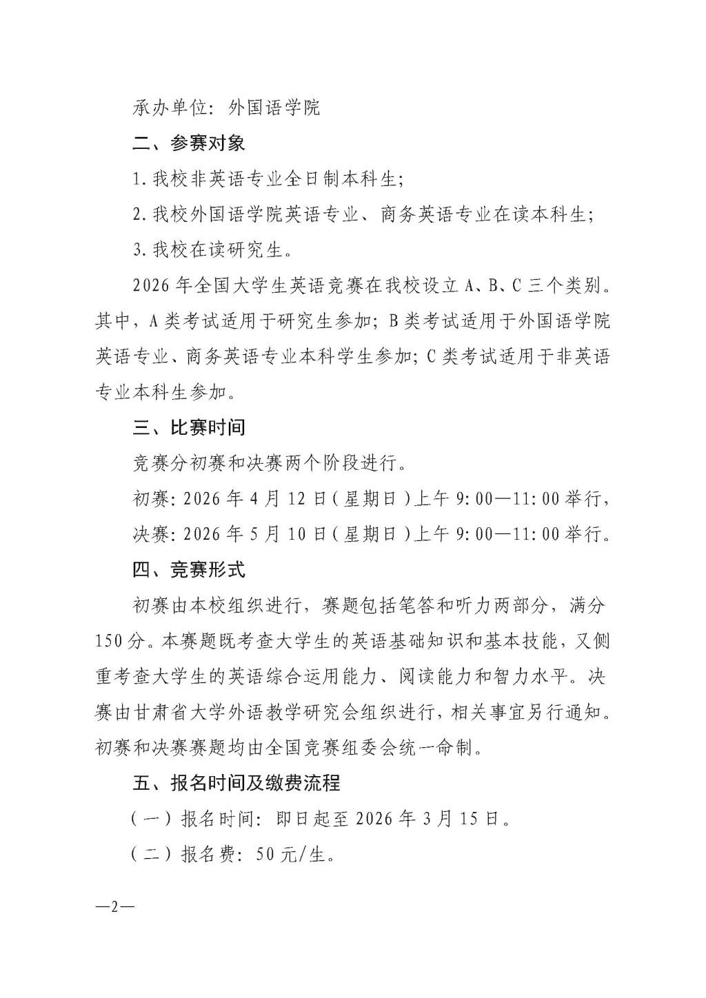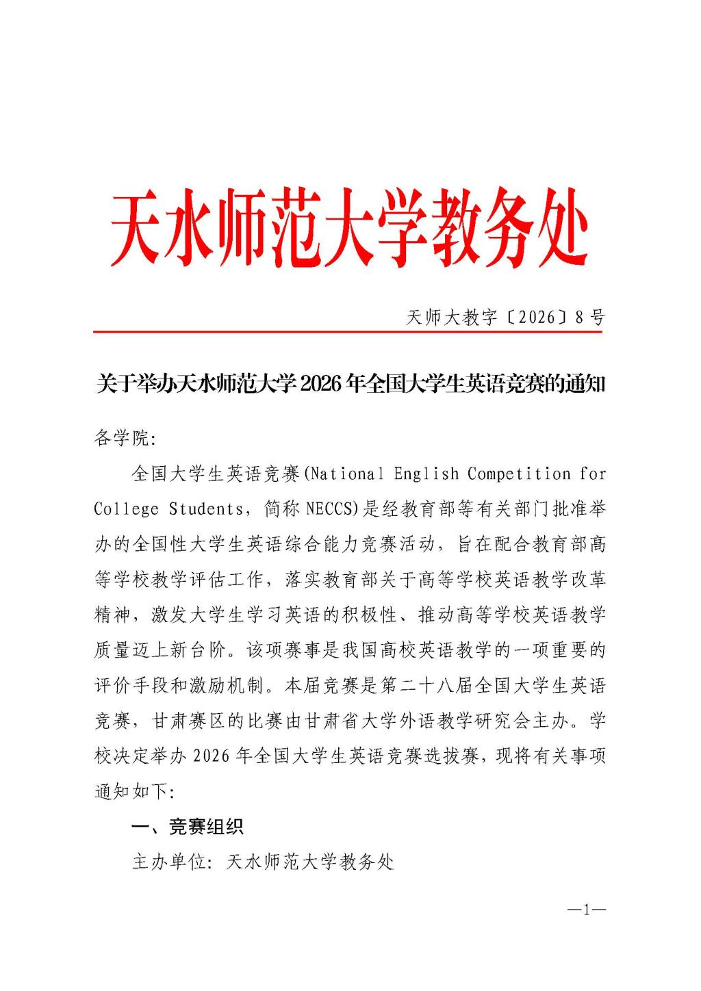 关于举办天水师范大学2026年全国大学生英语竞赛的通知