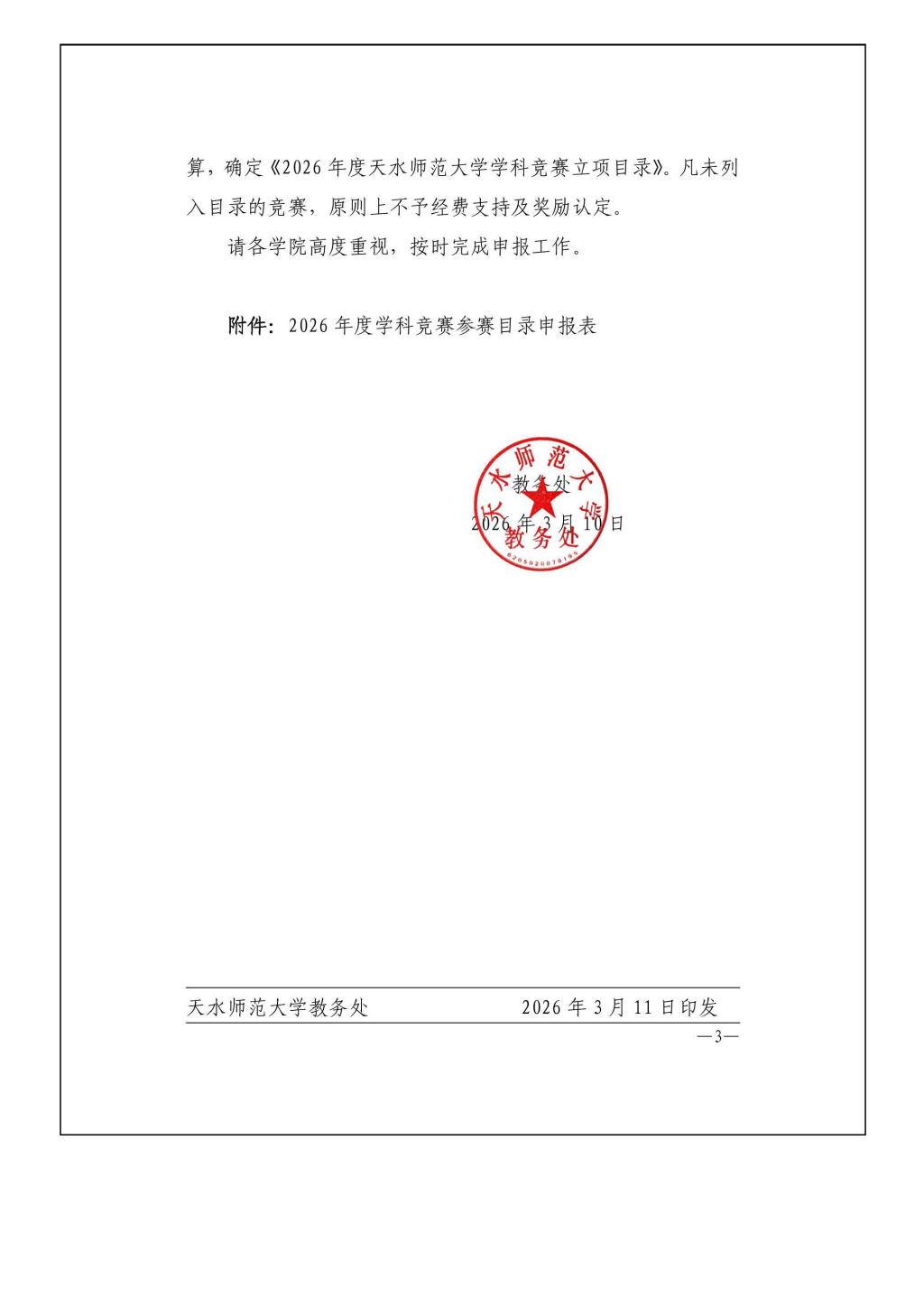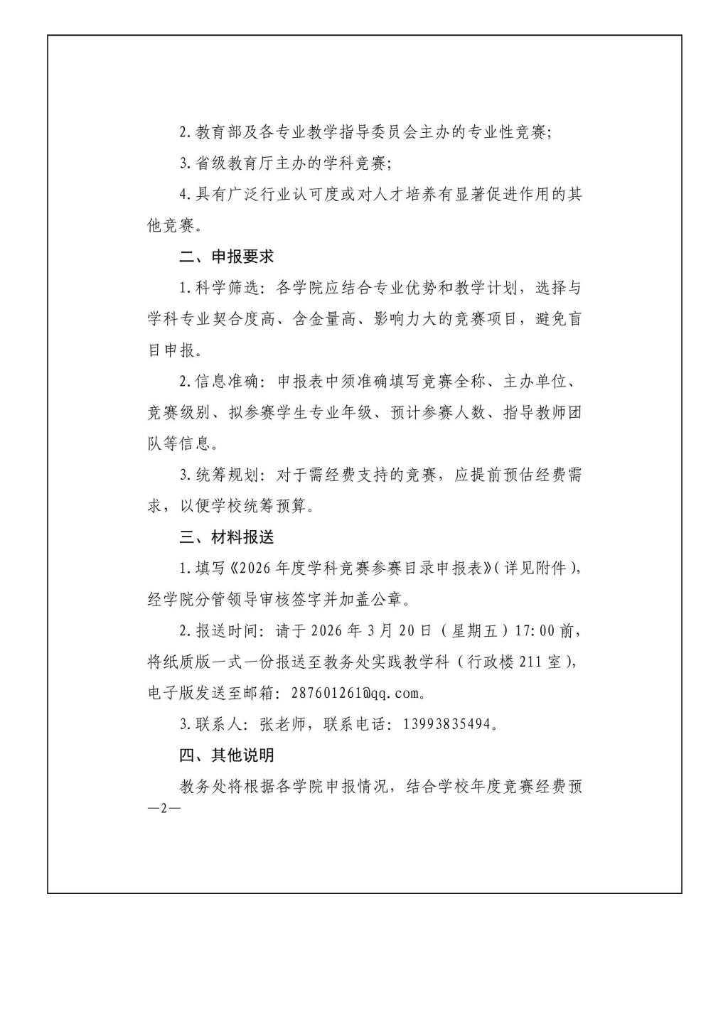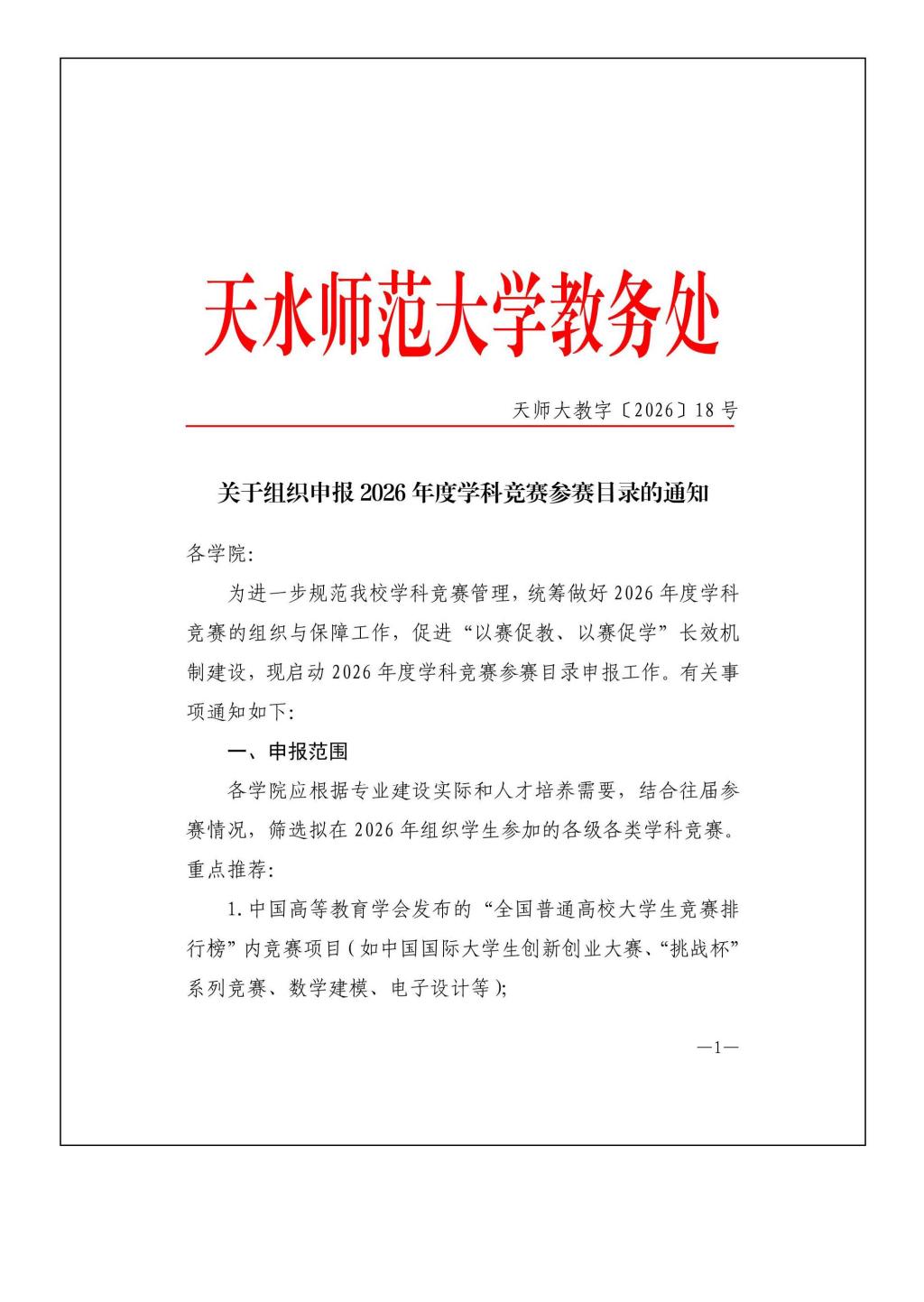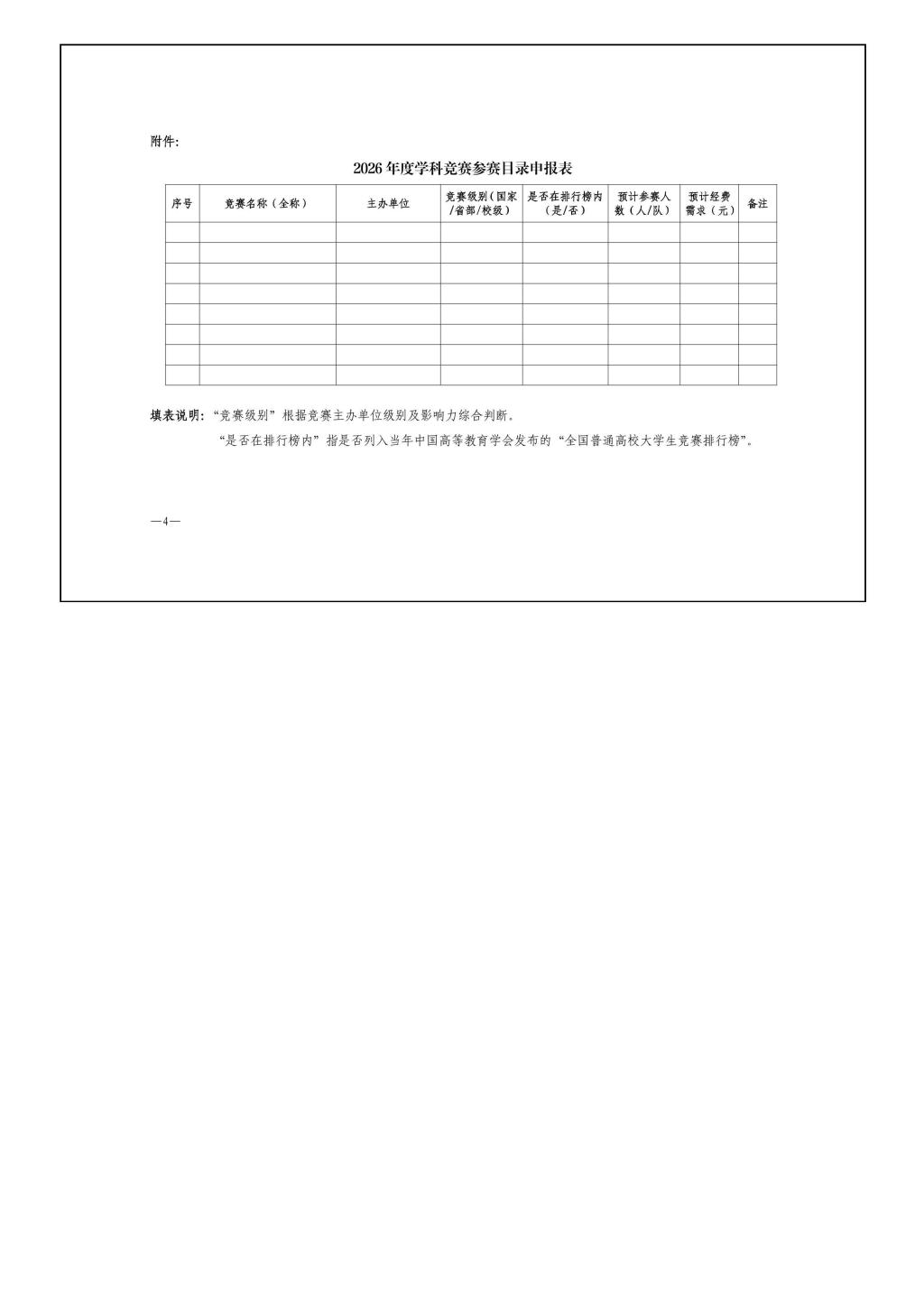 关于组织申报2026年度学科竞赛参赛目录的通知