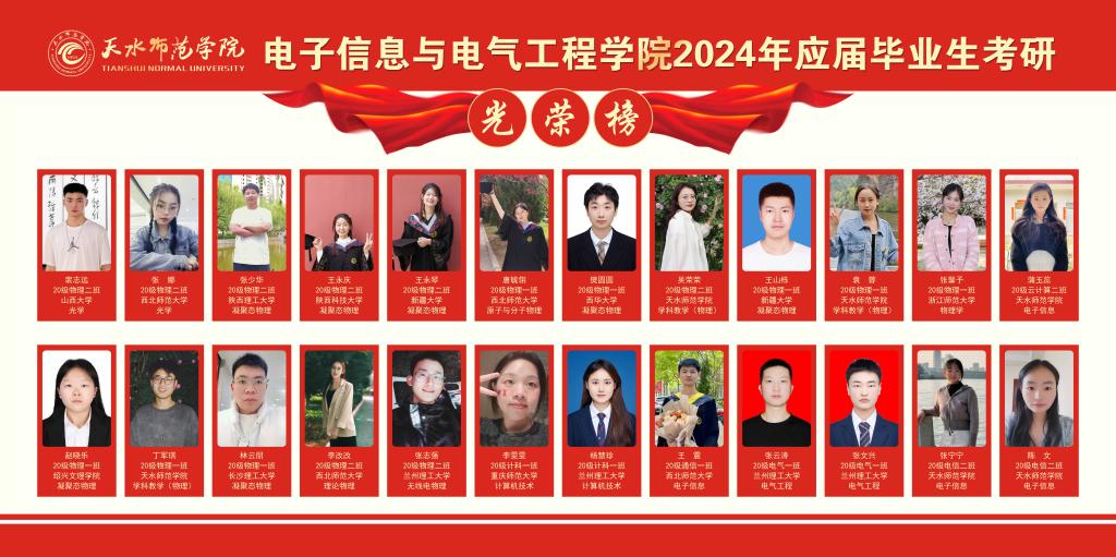 设有电子信息、学科教学(物理)、能源动力3个专业硕士学位点;电子科学与技术为省级重点学科,物理学为校级重点支持学科;学院拥有集成电路封装测试教育部工程研究中心、甘肃省集成电路产业研究院、甘肃省全固态激光工程研究中心、甘肃省集成电路智能装备行业技术中心和甘肃省工业智能电器行业技术中心;ICT产教融合创新教学示范中心和电子技术与智能控制实验教学示范中心两个省级实验教学示范中心,中国制造业民营企业500强的天水华天科技有限公司为省级研究生联合培养基地。